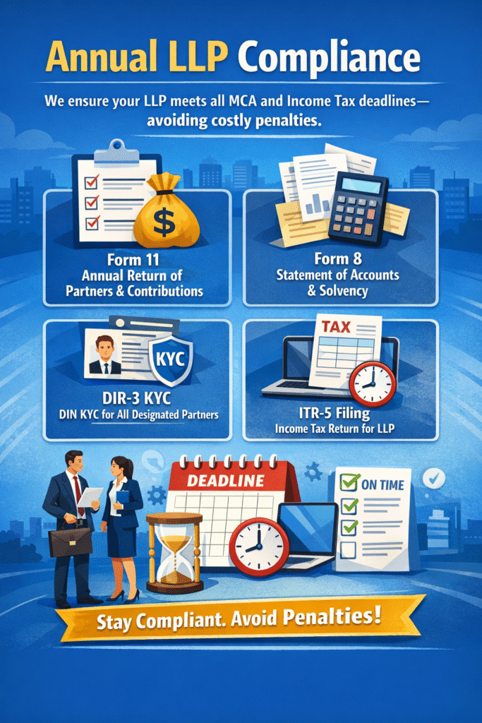 We ensure your LLP meets all MCA and Income Tax deadlines—avoiding costly penalties.